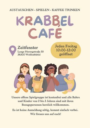 Für Kinder zwischen 0 und 3 Jahren. Jeden Donnerstag (außer in den Ferien) von 9.30 bis 11.00 Uhr im Martin-Luther-Gemeindehaus, Philosophenweg 1–3 in 38300 Wolfenbüttel. Es wird gemeinsam gesungen, gebastelt, gefrühstückt und gespielt. Weiterführende Infos finden Sie auf den Seiten der Martin Luther Gemeinde.